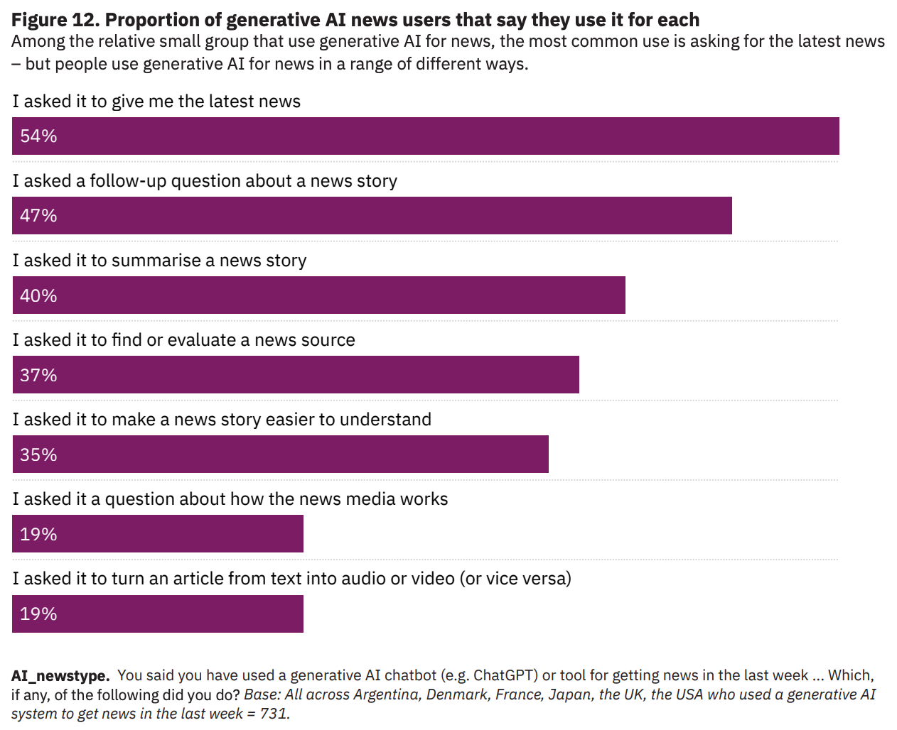 Waarvoor gebruiken mensen generatieve AI als het om nieuws gaat?