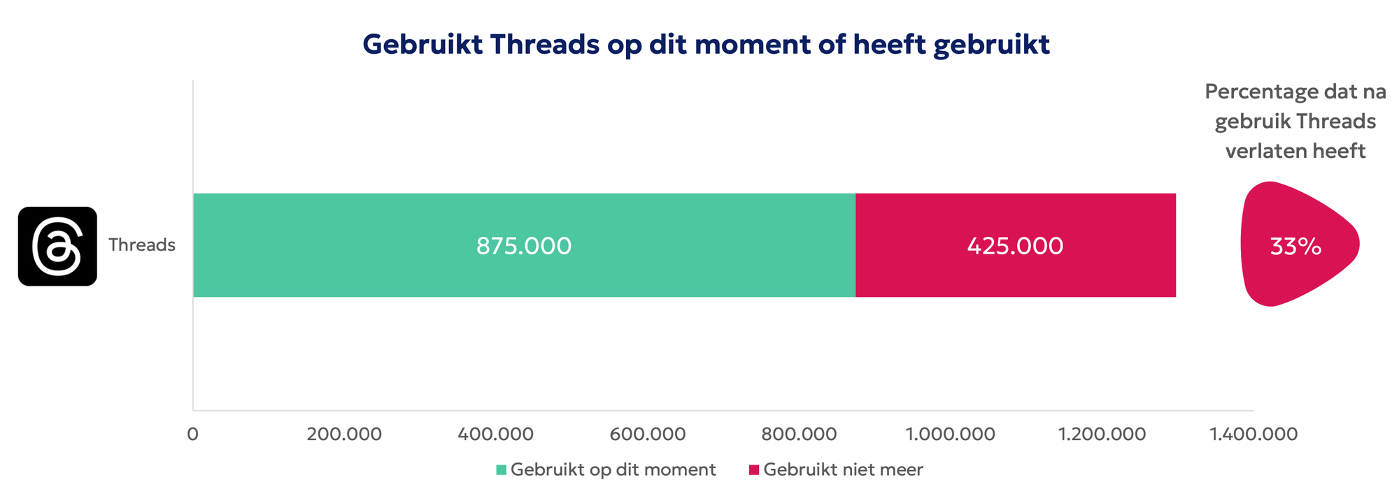 Volgens het onderzoek zijn 1,3 miljoen Nederlanders X-kloon Threads gaan gebruiken, maar is een derde daarvan alweer gestopt.